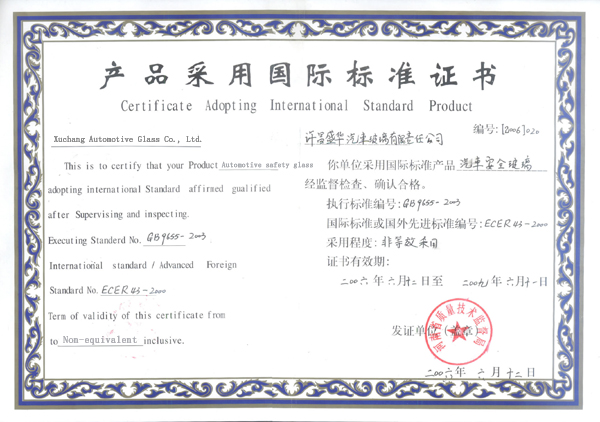 產(chǎn)品采用國(guó)際標(biāo)準(zhǔn)證書(shū)